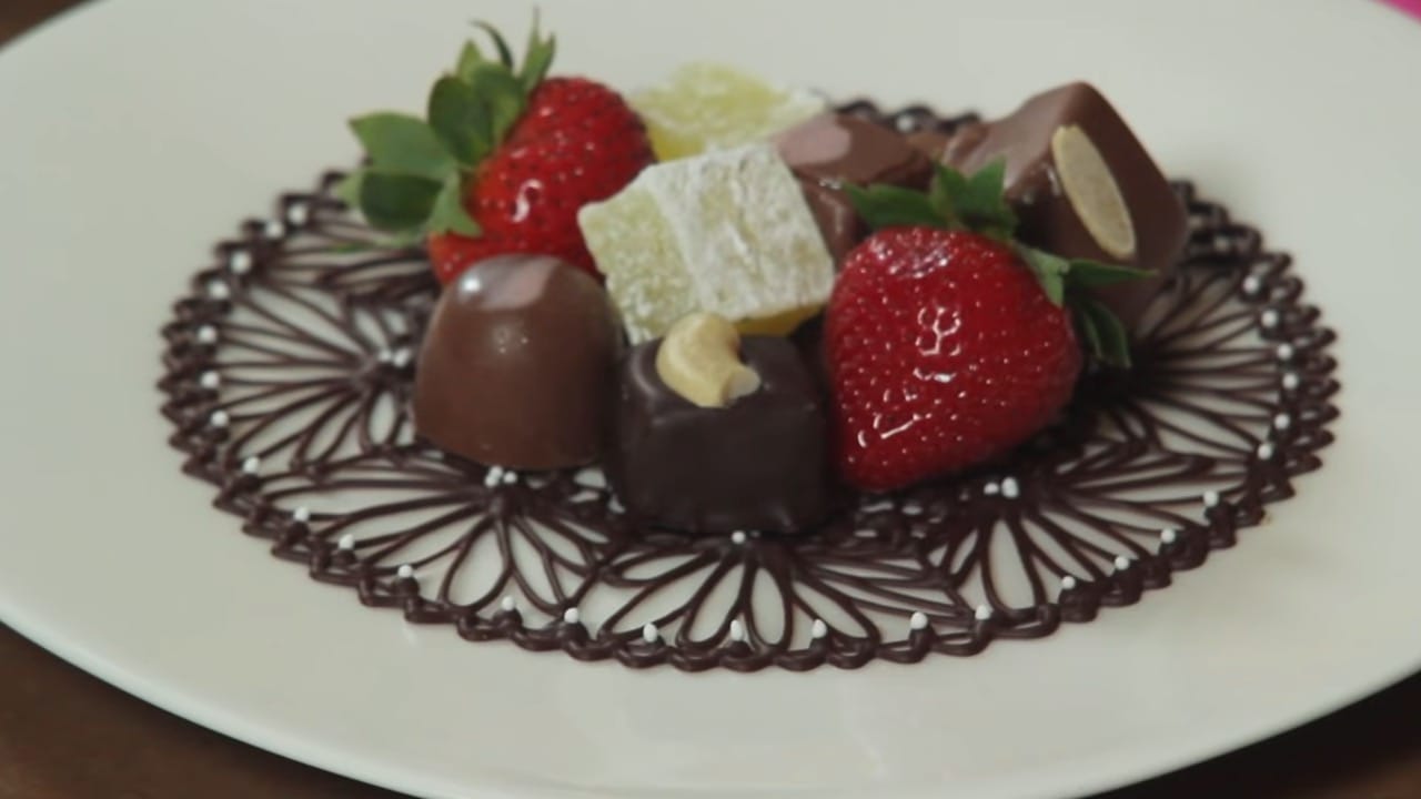 Looking for a quick way to glamorize simple desserts? Well then, these piped chocolate doilies may very well be your answer! In this video, I show how to create lacy underliners for dressing up slices of cake, samplers of sweets, or whatever end-of-meal treat your heart desires! No complicated chocolate tempering required – just pipe and refrigerate.
