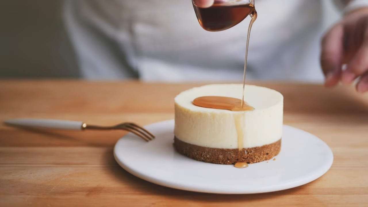Hello friends! Today we’re going to show you how to make no-bake white chocolate cheesecake with delicious maple Bourbon whiskey syrup.