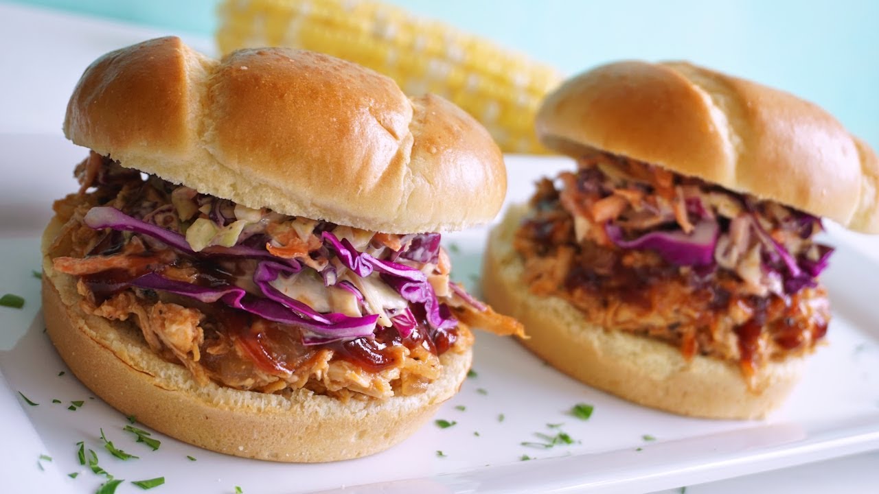 Slow Cooker Shredded BBQ Chicken Sliders with Coleslaw
